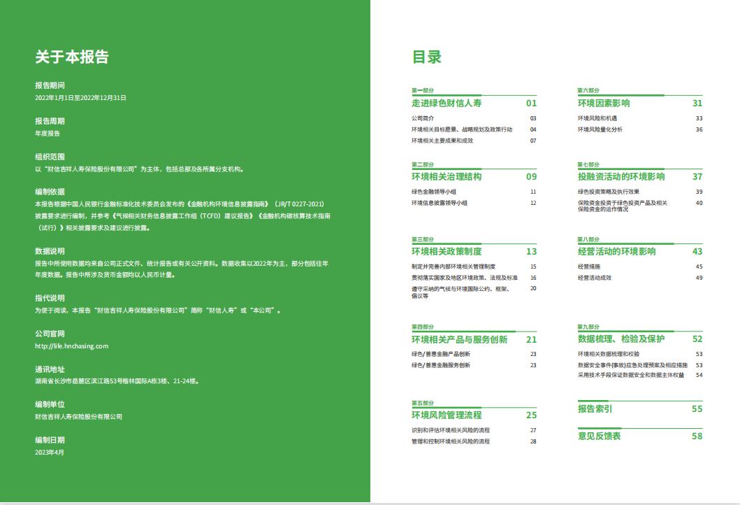 近日,在中国人民银行长沙中心支行的指导下,财信人寿发布2022年度环境信息披露报告,这也是财信人寿第二年发布环境信息披露报告。该报告全方位展示了2022年在财信金控统一部署下,财信人寿在经营活动、投融资服务、绿色公益等方面所取得的绿色实践成效。
