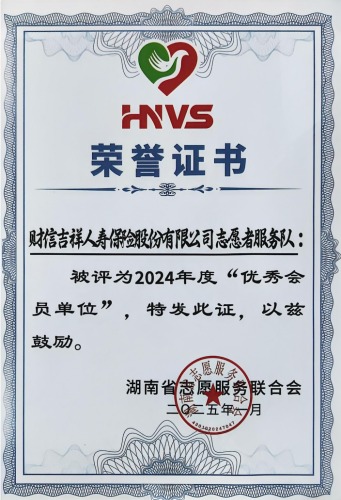 近日,财信人寿志愿者服务队荣获湖南省志愿服务联合会2024年度“优秀会员单位”称号,公司两名志愿者被评为2024年度“优秀志愿者”。这是自2022年以来,财信人寿志愿者服务队连续三年获得该项荣誉,既是对公司志愿服务工作的高度认可,也是对公司主动践行社会责任、服务百姓民生的充分肯定。