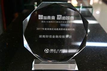 1月11日下午,湖南财信金融控股集团在2018年腾讯湖南影响力峰会上荣获“2017年度湖南区域最具影响金融机构”奖。这是由腾讯大湘网依据3200万网友的平台大数据,汇总评选而出的湖南区域的重磅奖项之一。