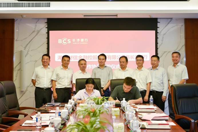 9月6日,湖南财信金控集团与长沙银行签订战略合作协议,双方将本着“优势互补、互利诚信、相互支持、共谋发展”的原则,建立全面合作关系,共谋银企合作新篇章,共推湖南实体经济发展。