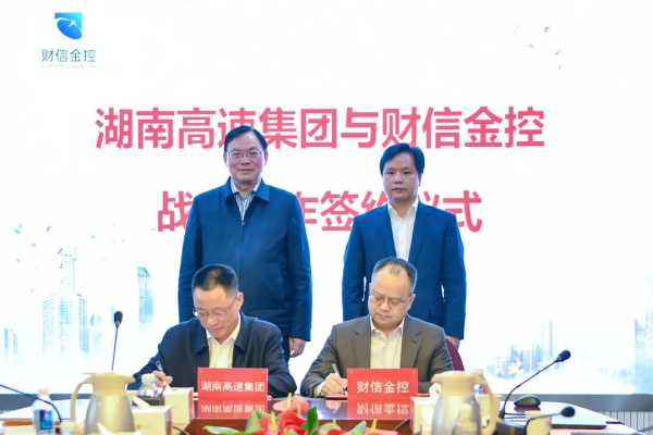 3月21日,财信金控与湖南高速集团在财信大厦举行座谈会并签订战略合作协议,湖南高速集团党委书记、董事长罗卫华,财信金控党委书记、董事长周建元出席并见证签约,湖南高速集团党委委员、总会计师汪小平,财信金控首席市场官胡鸿志代表双方签约。